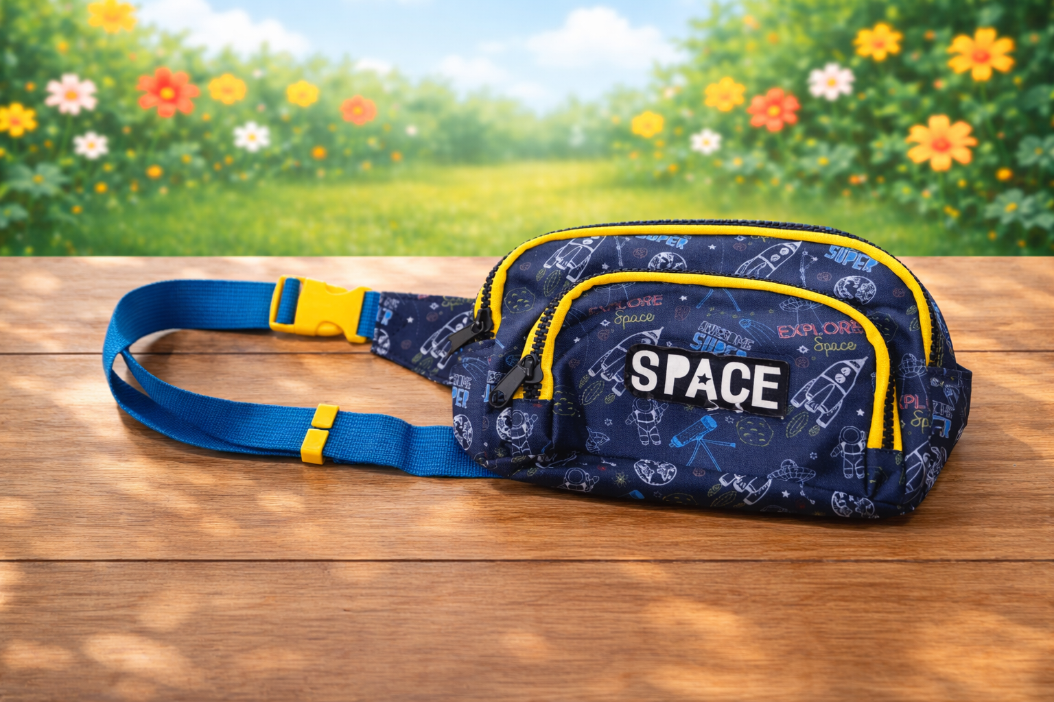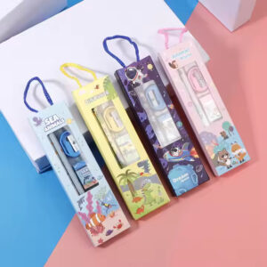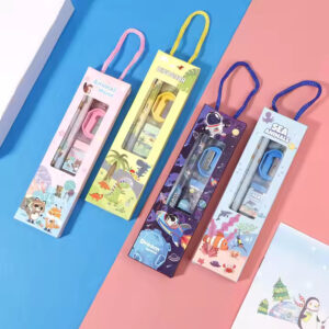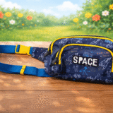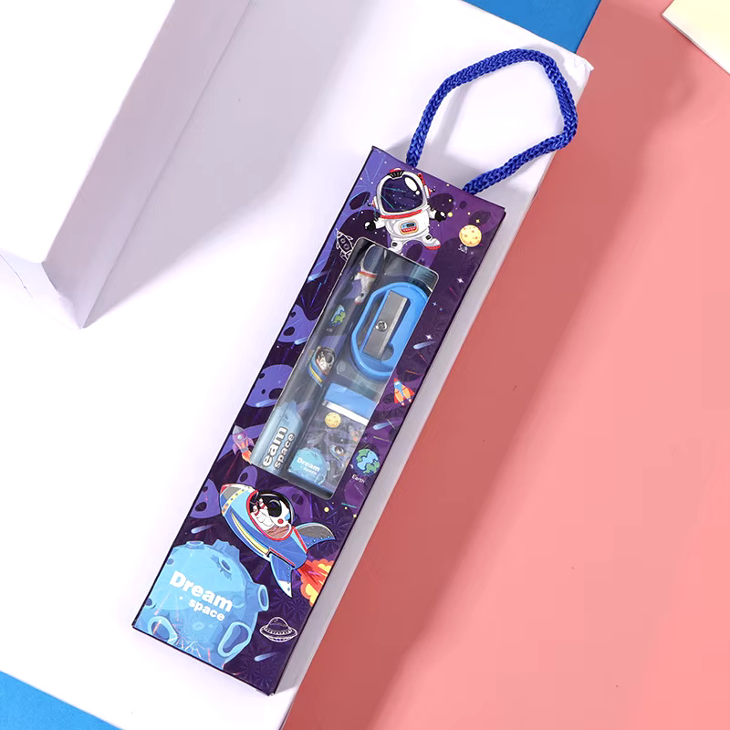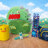 Products included: 1 Green Plush Backpack, 1 multi-functional Duck pencil holder, 1 Space waist bag, 1 navy blue space theme mini stationery set, 1 space astronaut keychain